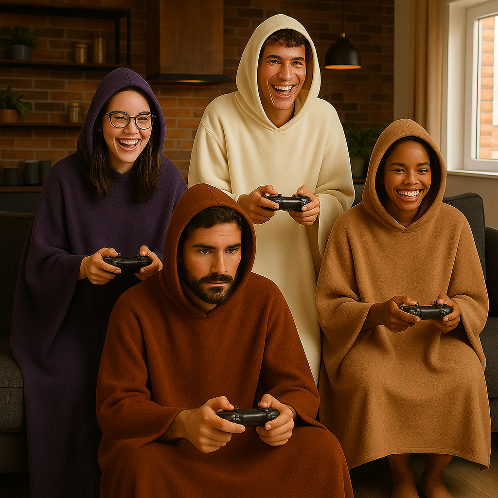 Its ultra-plush fabric and loose fit wrap each person in total comfort to laugh, play, or relax without ever feeling cold.